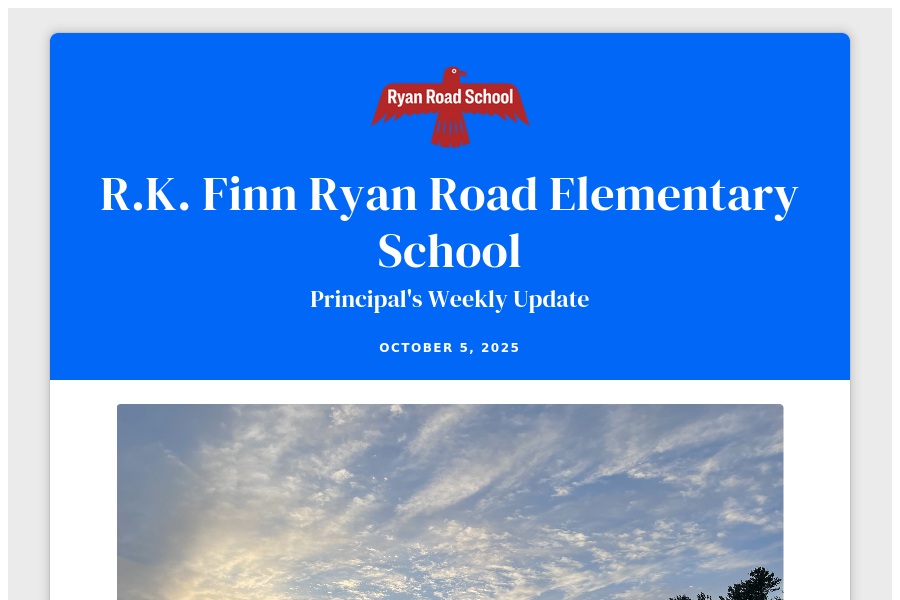 The RK Finn Ryan Road Elementary School is a neighborhood school in Florence, Massachusetts with approximately 230 students in grades K-5. We are part of the Northampton Public Schools. We are committed to meeting the needs of all learners. We are a friendly and collaborative school community, and we hope all feel welcome and valued here.